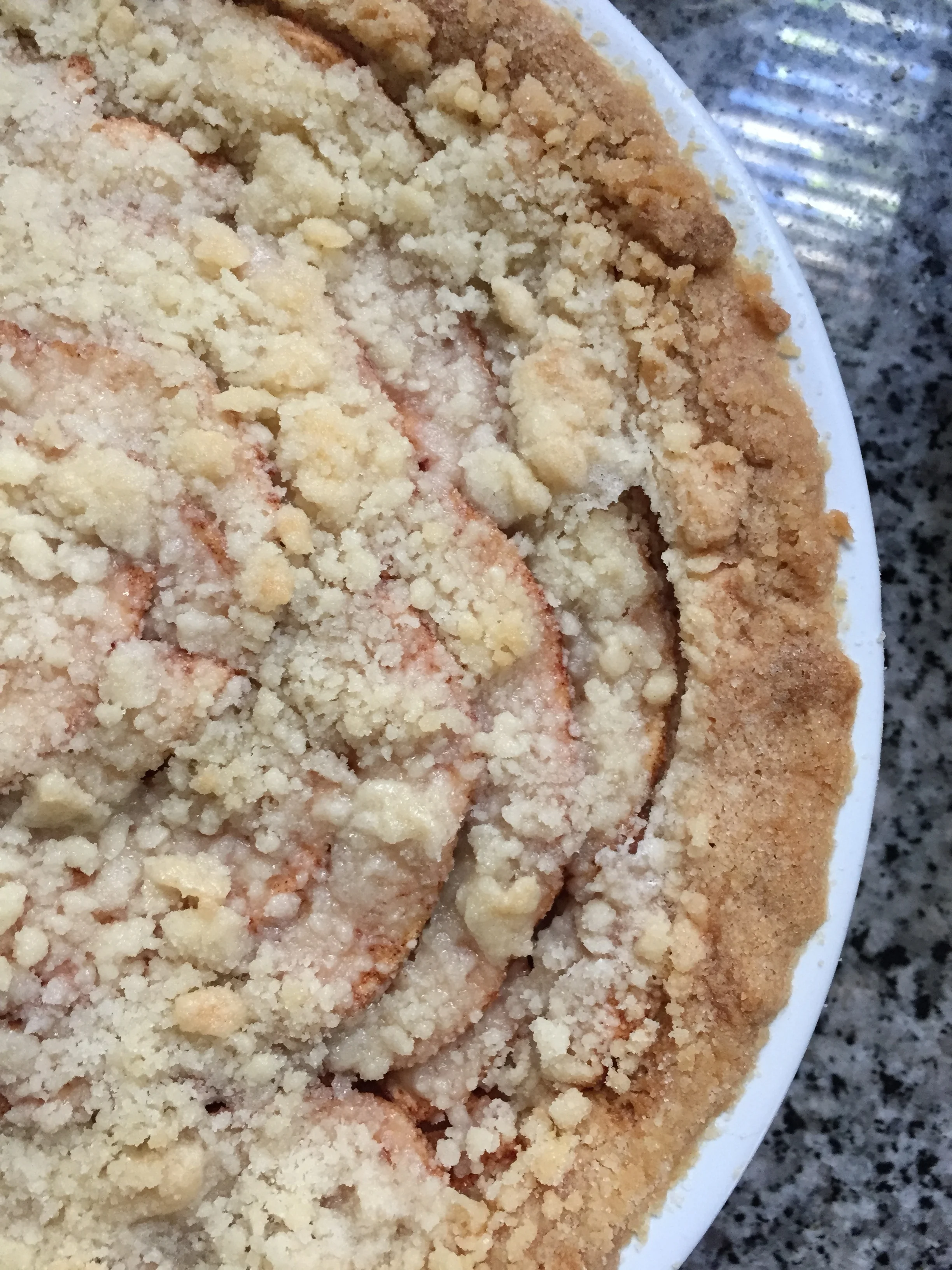 The holidays call for pies aplenty in my house, and in my opinion, it's hard to top a perfect apple pie. My very favorite recipe was penned by Hitchcock leading lady Eva Marie Saint, which somehow lends an extra air of glamor for me when it comes to baking this Thanksgiving staple. Elegantly simple, the pie's crust calls for one cup of flour, one cup of sugar, and one stick of butter -- though I usually make one and a half times this amount to ensure that I have an overly generous amount for the crumble topping. The sugar, flour and butter are gently incorporated into a crumbly dough, divided into two equal amounts and then the first half is patted into a deep dish pie plate, creating a sweet shortbread-like base when the finished pie is baked. Mandolined apple slices (I typically opt for tart Granny Smith apples as a balance to the sweet pie crust and crumble!) mixed with cinnamon form the pie's deliciously fruity filling, and I find that this go-to recipe never fails to impress and is the perfect finale for any holiday feast!