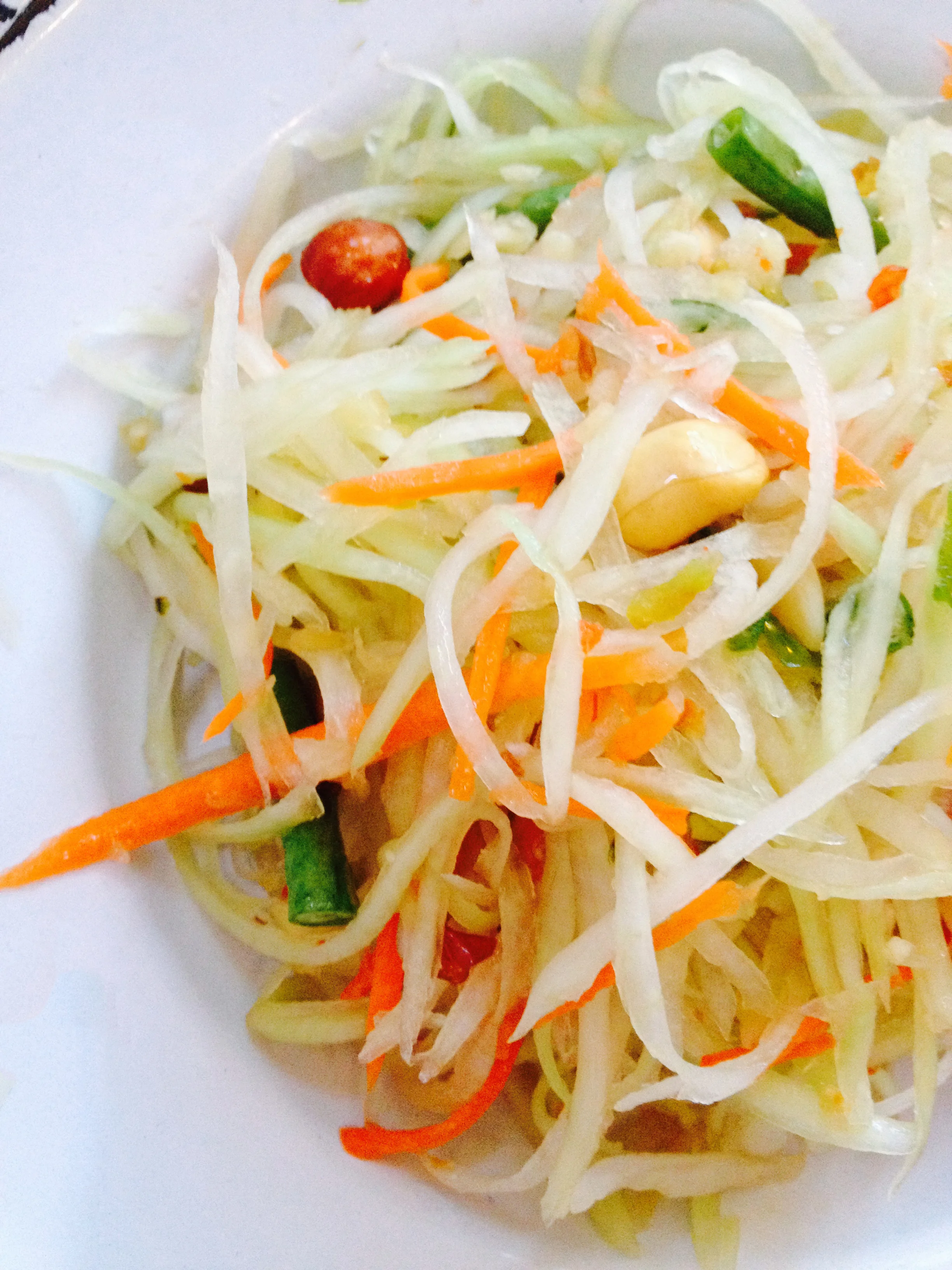 moo sadoong, or ‘startled pig,’ with grilled pork, basil, lemongrass, raw garlic, fish sauce, lime, chile