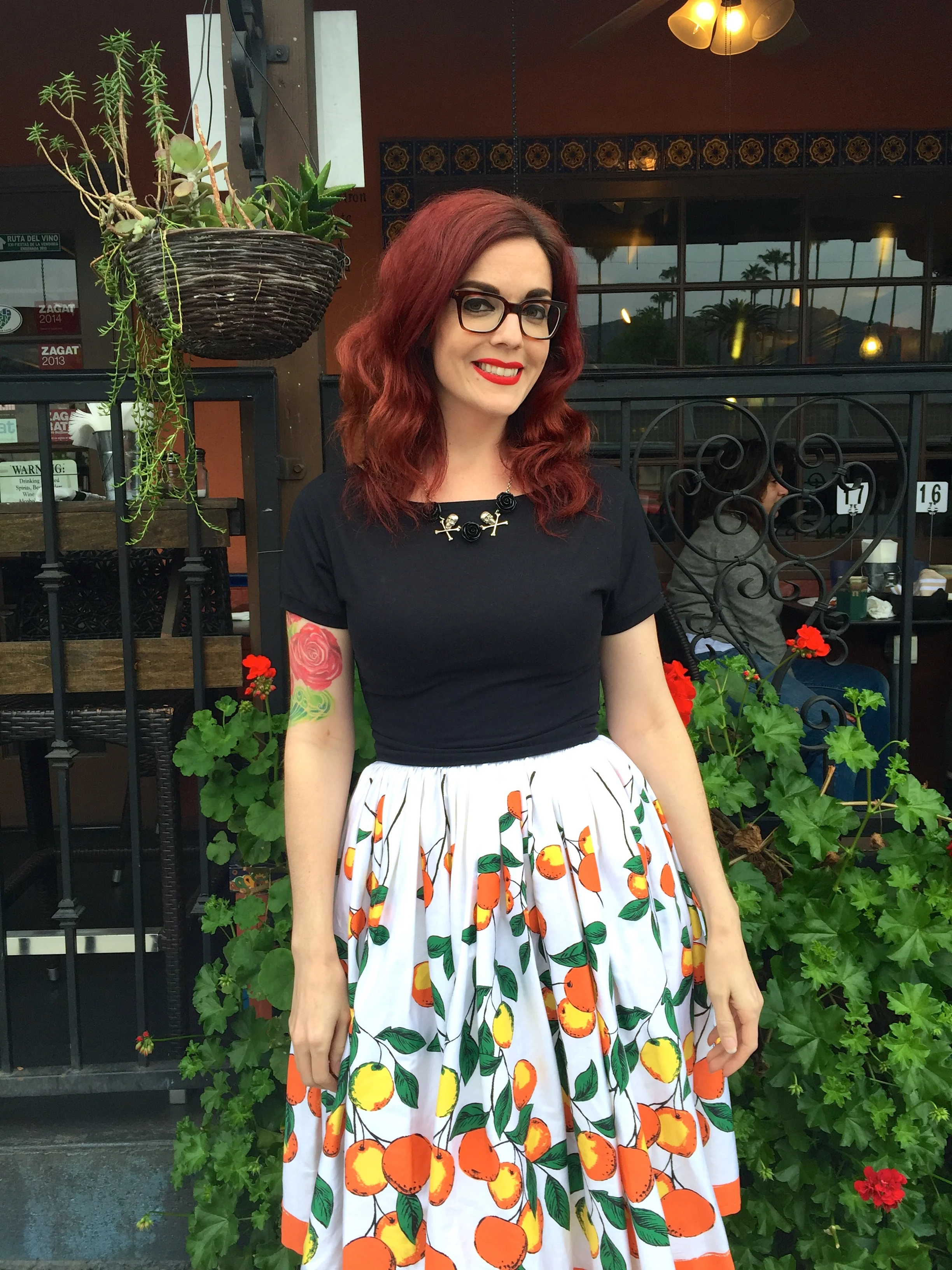 Skirt: Pinup Couture Jenny Skirt in Orange Branch Border Print