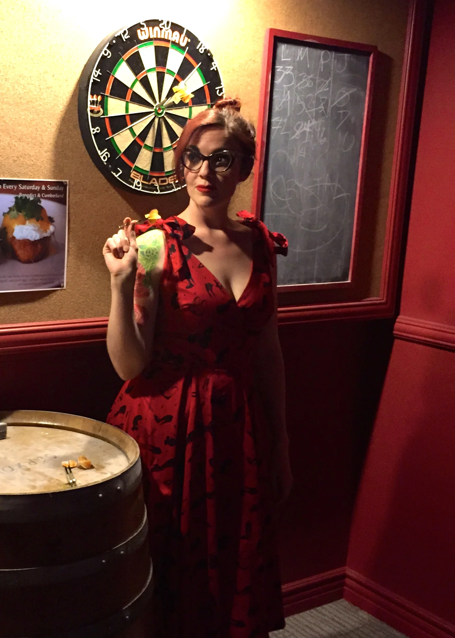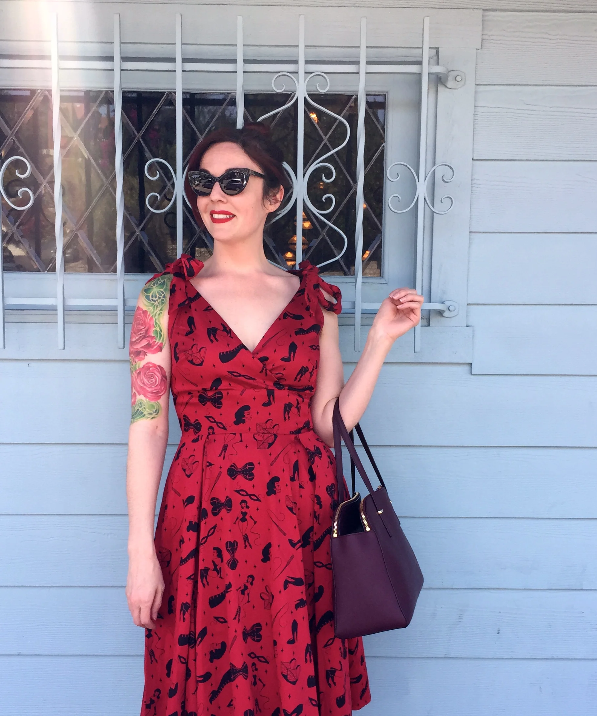 Dress: Deadly Dames Tie Me Up Dress in Red & Black Fetish Print