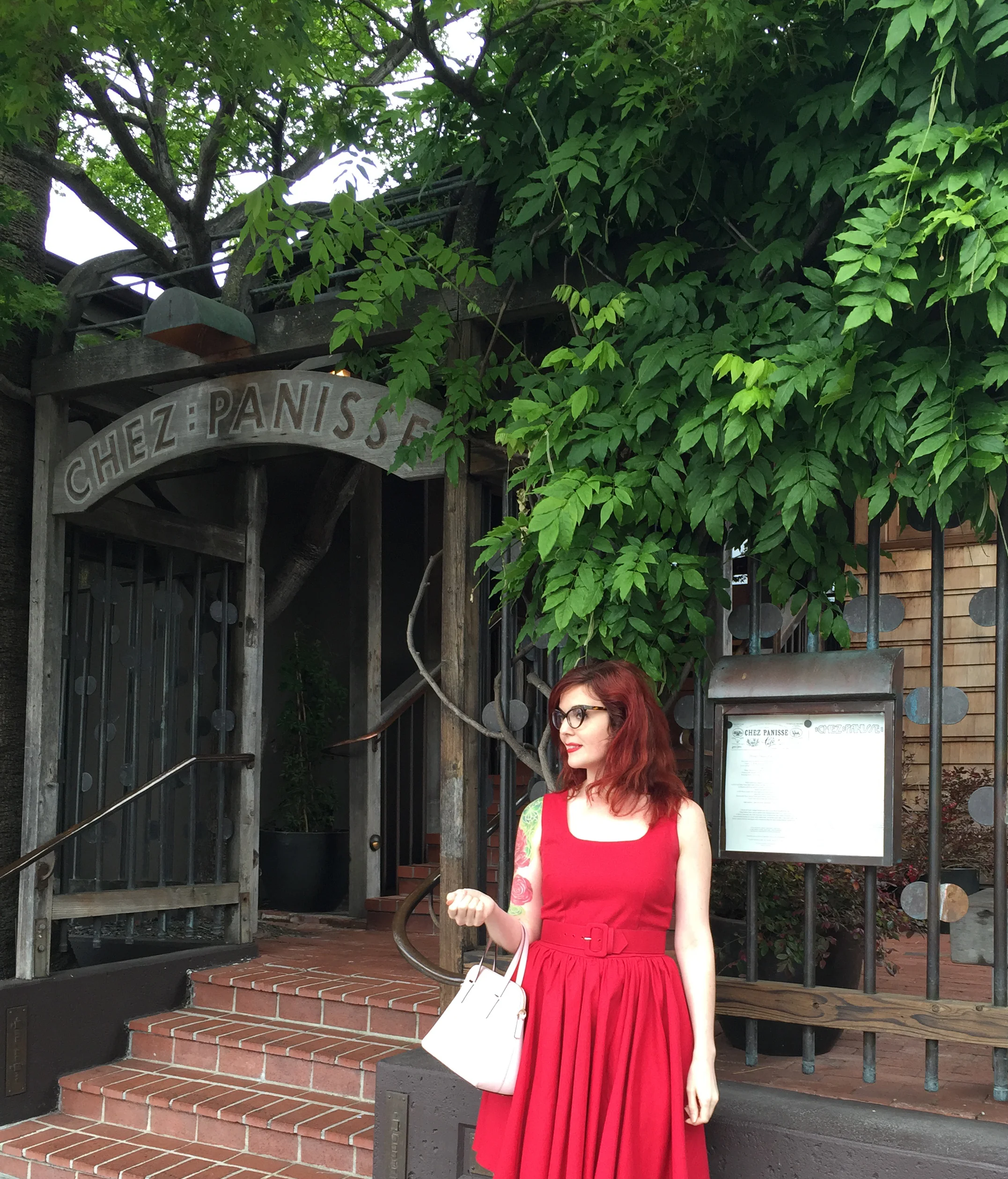With a wedding to attend this past Saturday in Livermore and the daunting thought of driving north in Memorial Day Weekend traffic weighing on my mind, I thought brunch at Chez Panisse Café would be the perfect way to bait myself for an extremely early morning start to my drive. Arriving in Berkeley with plenty of time to spare, my boyfriend and I inadvertently wandered into the restaurant kitchen prior to its official opening (oops!) then sat enjoying the upstairs café’s pleasant view of treetops and gray sky before settling into a corner booth with a Calicraft “Chez Panisse” Farmhouse Ale. Having last savored the tasting menu at the more formal downstairs Chez Panisse dining room during my own attendance at UC Berkeley nearly a decade ago, I was excited to sample the beautiful, refined a la carte food offered at the café. Embodying co-founder Alice Waters’ emphasis on utilizing organic, seasonal foods from local and environmentally conscious farms, ranches, and dairies, the café’s menu showcases Californian cuisine – which Waters is effectively co-credited with inventing – at its finest. The dishes are elegantly simple, focusing on the quality of the ingredients utilized and the harmony of flavors developed on each plate. Locally caught halibut is served as tartare with Little Gem lettuce, avocado, and citrus vinaigrette. Stemple Creek Ranch sirloin is served with creamy polenta and grilled zucchini with chimichurri sauce. A perfectly velvety lemon-buttermilk panna cotta is paired with enormous and juicy roasted blueberries and candied Meyer lemon. After enjoying this graceful and delicious meal, we re-parked and strolled across the UC Berkeley campus before finishing with an easy 45-minute drive back down to Livermore for our wedding revelry – all in all, my game plan was executed absolutely perfectly!