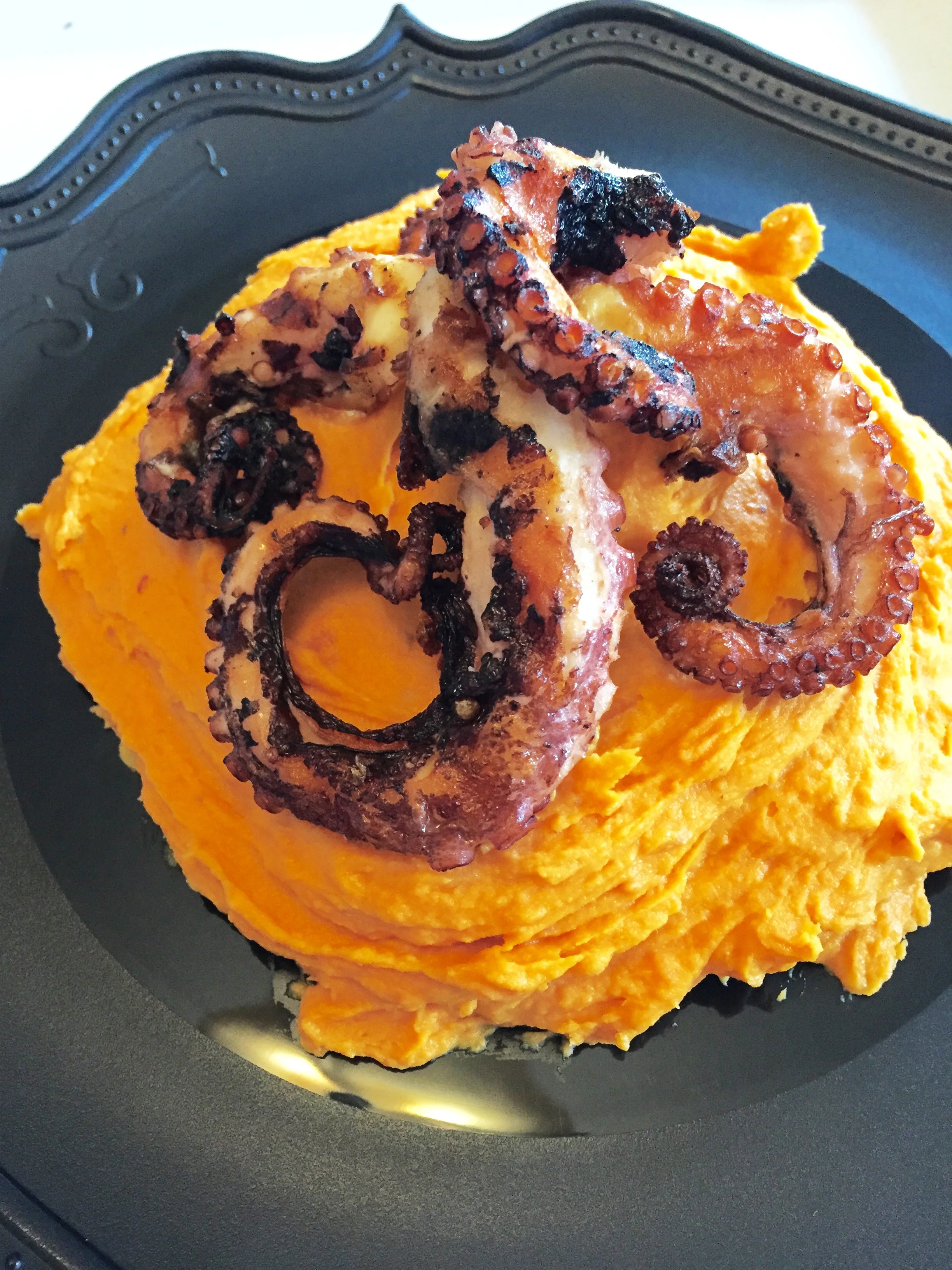 My recently-purchased pressure cooker has definitely become my go-to kitchen tool as of late -- I love that dishes come together in a nearly magical amount of time (which is ideal on busy weeknights, of course!). This octopus recipe is an adaptation of one that was demonstrated for me in a cooking class with Chef Michael Voltaggio (a similar one can be found here), and I think it pairs just perfectly with my ultra-simple secret recipe sweet potatoes.